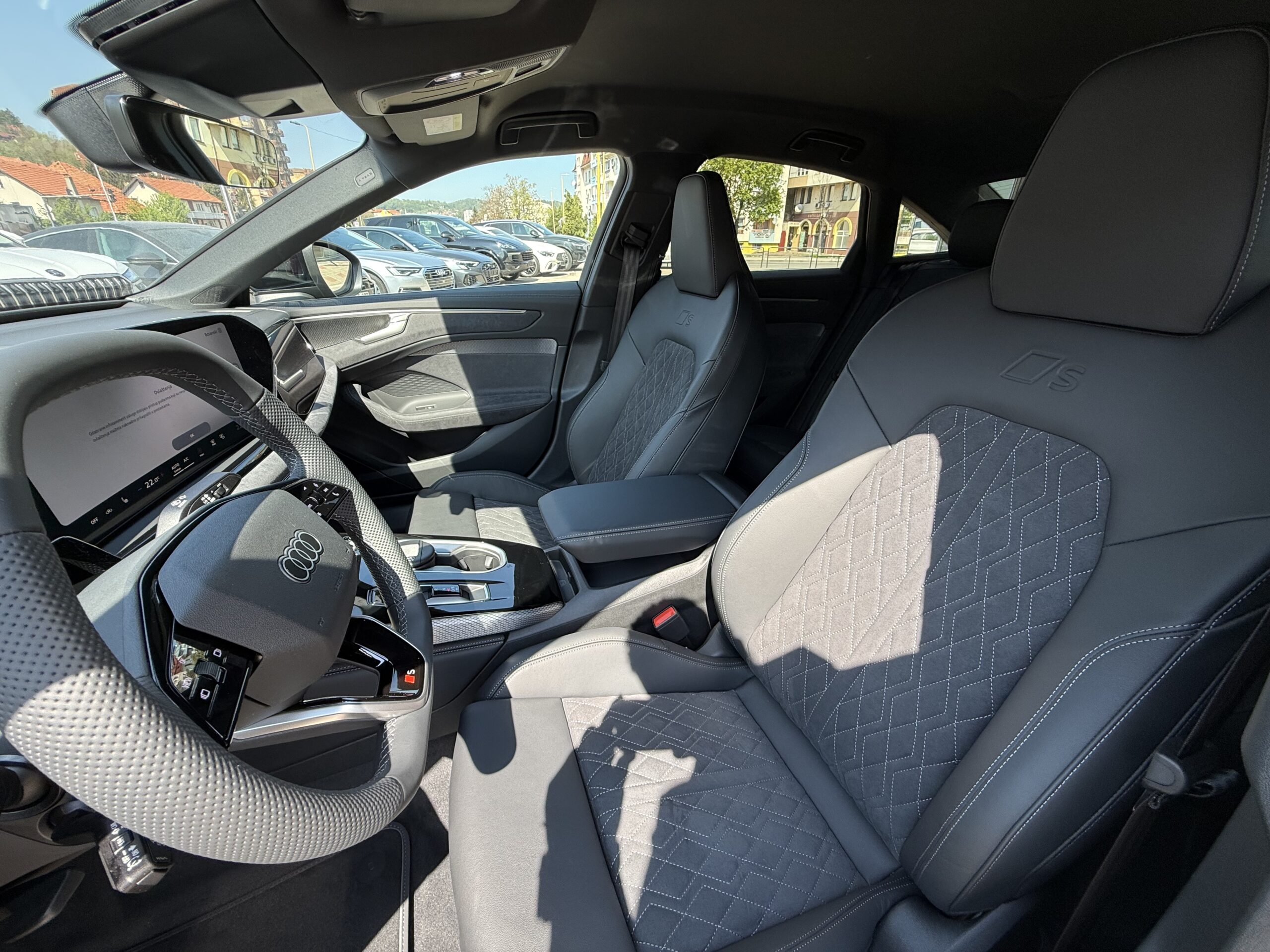PWN Unutrasnjost S m.f./koza sa sportskim sjedalima , presvlake sjedala Dinamica , pedale i odmoriste za nogu od nerdjajuceg celika , umetci u pragovima naprijed sa S logom, Alu, osvijetljeni , kozni sportski upravljac 3 kraka, zaravnjen sa gornje i donje