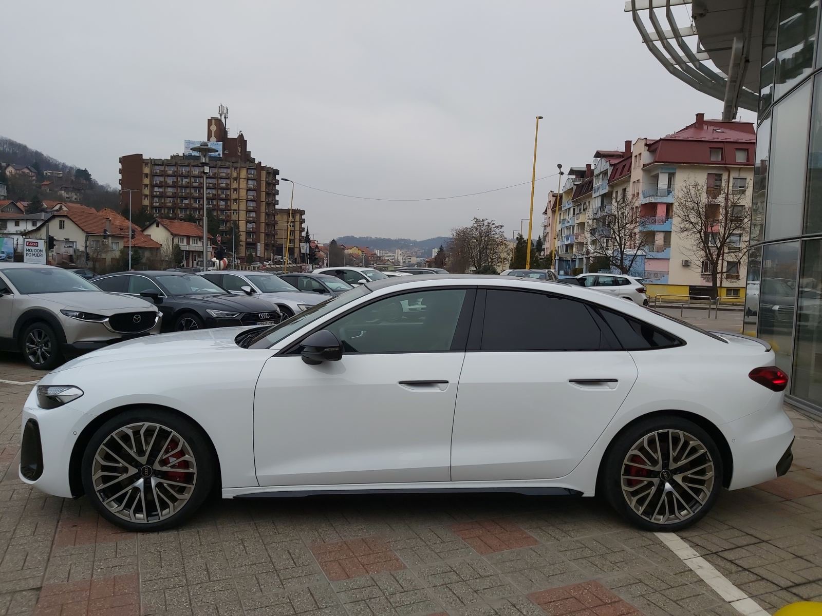 Tech Pro paket koji sadrzi: Tech Pro paket koji sadrzi: Tech Plus (MMI prednji display za suvozaca, JX1 – asistent za promet naprijed, KA4 – 360 kamere, 6C4 – zracni jastuci naprijed i nazad, 4G3 – asistent za skretanje, 7W7 – Proactive zastita putnika, naprijed, nazad i sa strane, 8IY – Matrix prednja svjetla, 8X8 – sistem za pranje prednjih svjetala QR9 – kamera za prepoznavanje prometnih znakova) uz nadogradju paketa + AI9 – grijanje upravljaca, 1BQ – S sportski pvjes sa elektro kontroliranim amortizerima, 2C7 – elektro podesavanja upravljaca. 4A4 – grijanje prednjih i straznjih sjedala, 99C – Drive & Park asistent paket Plus, GJ6 – Adaptive cruise asistent Plus, 1BQ – S sportski ovjes sa elektro kontrolom amortizera i 8VY – Digitalna OLED straznja svjetlaS line presvlake sportskih Plus sjedala koza u crvenoj boji